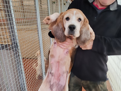 Vicino a Torino. Ogni volta che mi fanno vedere in allevamento chi devono “dismettere” ti rimangono in testa.. ora penso a lei. Fattrice beagle di 10 anni, quanti cucciolo avrà fatto per chi compra i cani.. quanti. Adesso che la cedono sarebbe bello uscisse presto.. noi non possiamo metterne in pensione a pagamento centinaia, se non ne dai via centinaia.. Si deve pure scegliere, quante volte facciamo a sorte con i bigliettini, a chi regalare una gabbia.. Logico sarà anche lei da conquistare , ma ora che può uscire ogni giorno che rimane li è buttato….