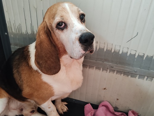 II aggiornamento per questo beagle maschio riproduttore. Ora è stato ceduto all’associazione ed è in pensione, ha cambiato box, però ora i volontari faranno di tutti per insegnargli a camminare, andare a passeggio, a conoscere i prati verdi e poi il sogno finale trovargli casa. L’abbiamo chiamato Artù. Sguardo che commuove..